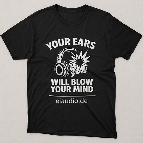 "Your ears will blow your mind" erinnert an die bewusstseinserweiternde Funktion des aufmerksamen Zuhörens. Denn erst, wenn unsere Seele berührt wird, die Musik in all ihren Dimensionen den Raum füllt, beginnt unser Inneres, sich neu zu ordnen. Das T-Shirt ist ein echtes Statement und eine Liebeserklärung an den guten Klang.
